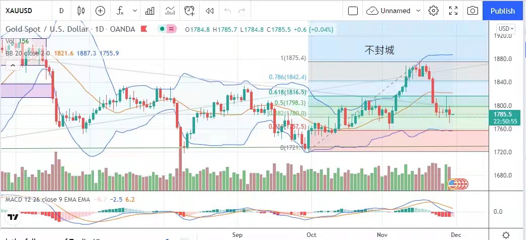 次并未为美联储在加息的方向或政策提出任何指引。似乎新变种病毒的出现,令到美联储官员变得保守起来。金市昨日反复,亚洲开市曾经急挫,最低见1770美元,