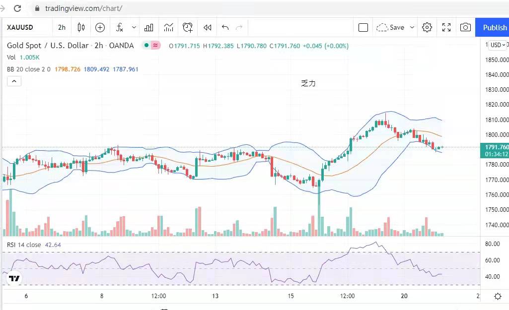 甚至美元都下跌。黄金自然也难独善其身,金价昨日曾升穿1800美元,最高见1804.2美元,最低见1788.4美元,以17980.6美元收市,跌7.6美元。