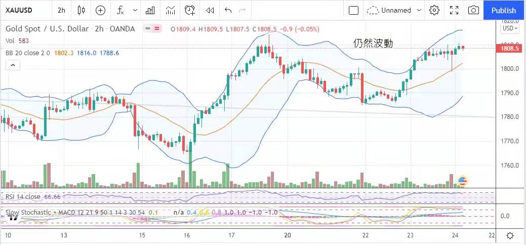 亦有利黄金的升值。金价连升两周,在新年前夕并没有重要数据情况下,料将窄幅波动。今日建议波幅1804美元至1815美元。
