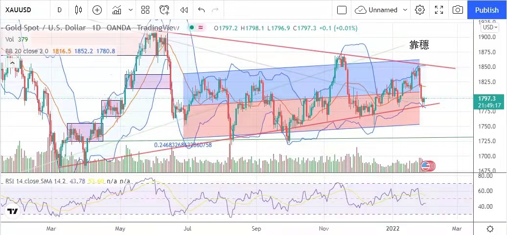 此番说话刺激了金价反弹,金价从开市价的1791.7美元开始上升,最高见1799.9美元美元,以1797.2美元收市,升5.5美元。