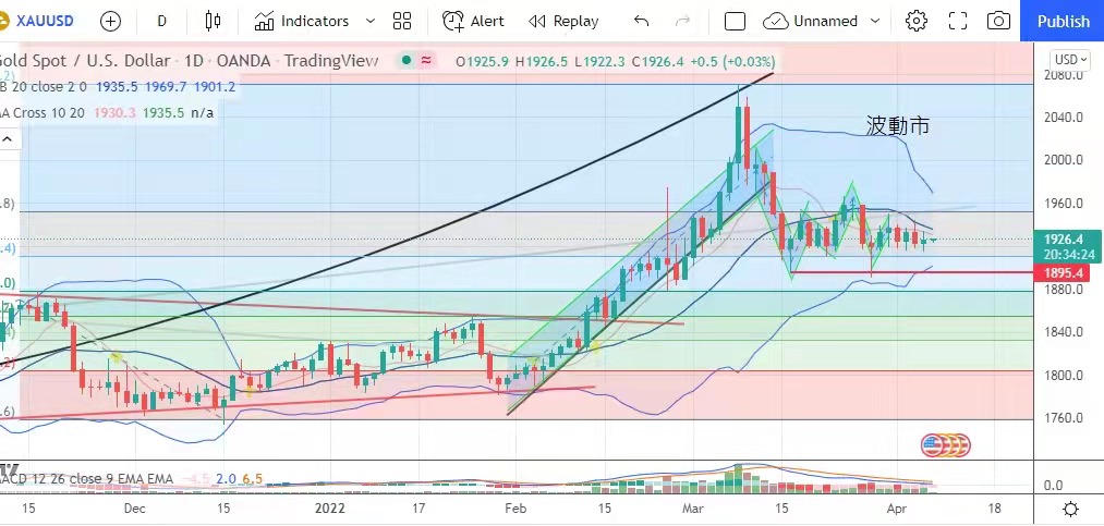 改为加息25点子。金价昨日波幅大而升幅小,金价昨日最低见1915.1美元,最高见1933.6美元,最后以1925.9美元收市,升2.6美元。