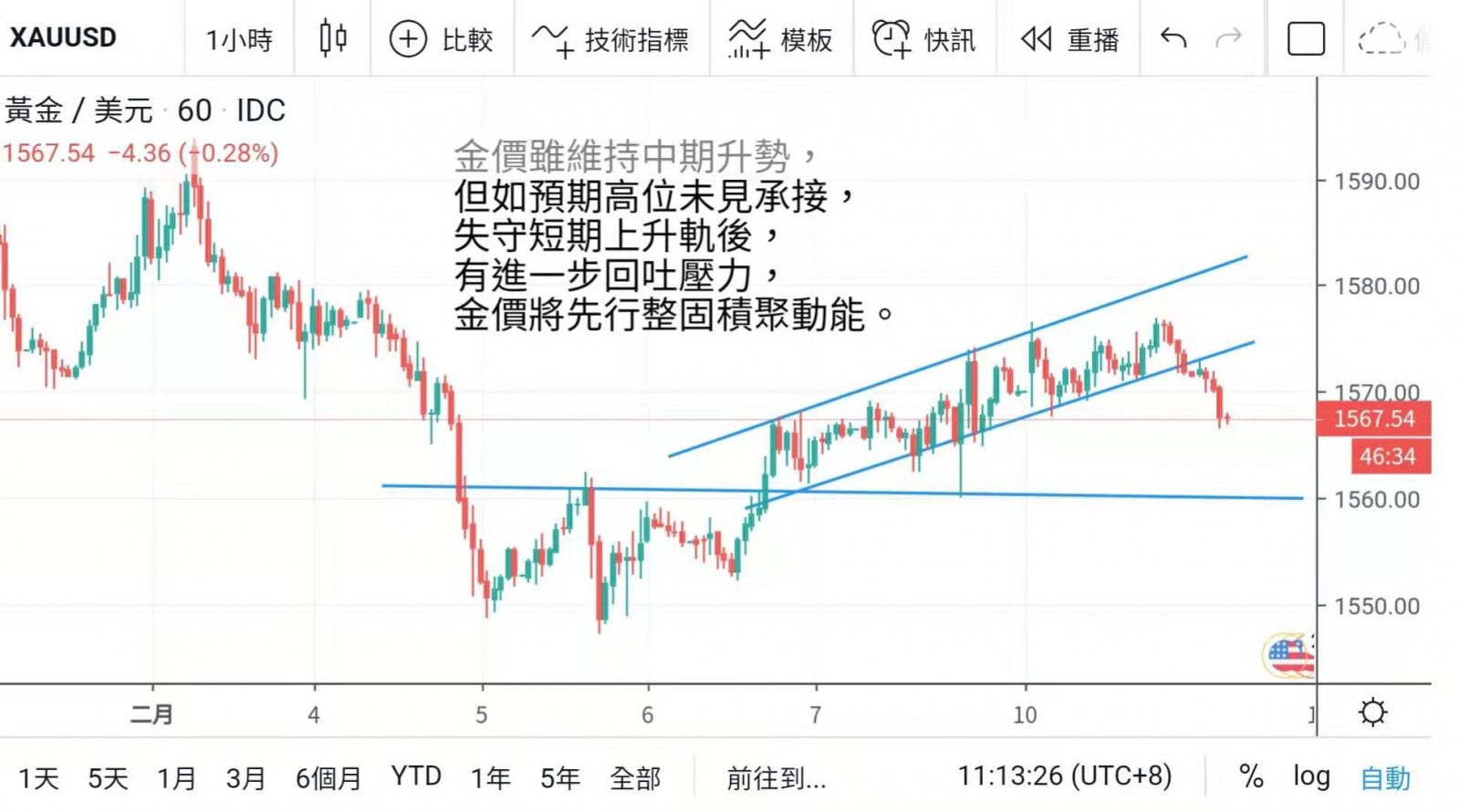 高位除非能重新企稳1580上方,延伸了上涨空间,否则不宜高追,而今晚美国亦欠缺重要经济数据公布,