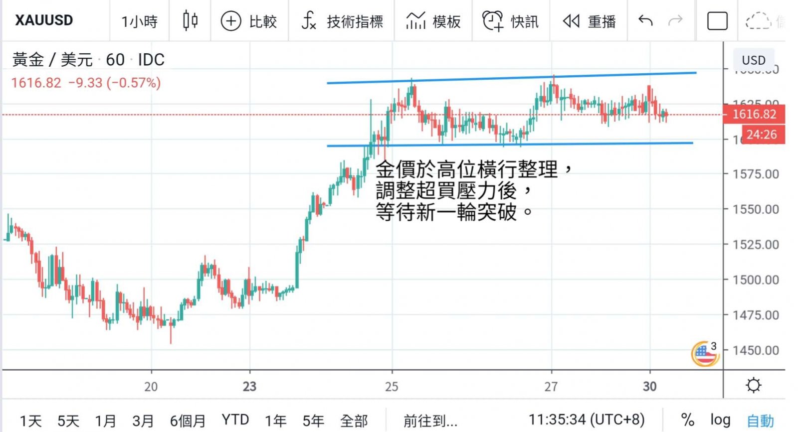 金價回軟至1600關口,可再度買入,現時美元反彈,會略為限制了金價的升幅,金價正好趁此機會,調整早前的急升狀態,整固過後,可望低位再度吸納,等待新一輪突破。