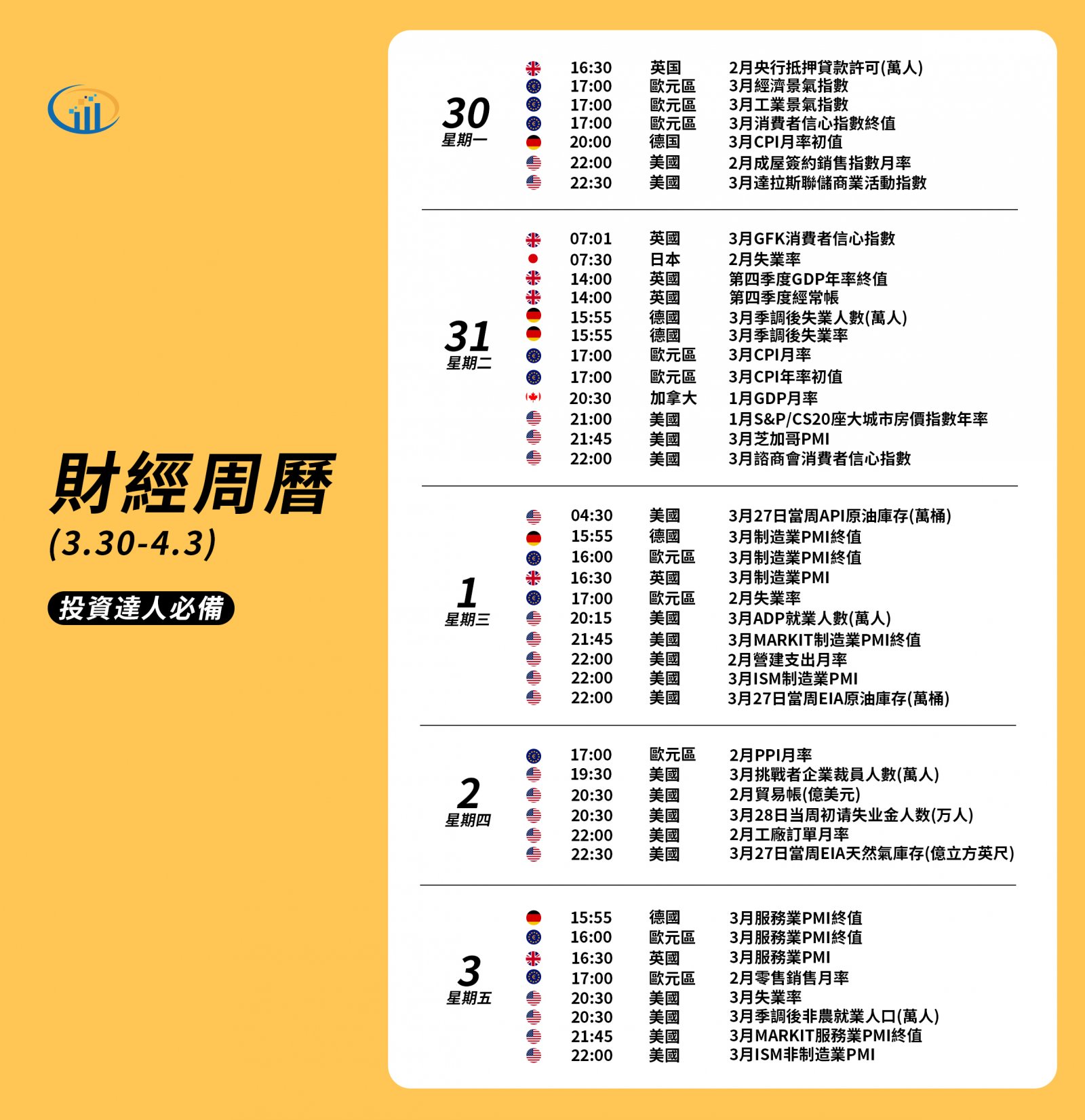 美元上週亦接連下挫,美匯加權指數失守100大關,跌至98水平徘徊,英鎊及紐元帶領整體非美反彈走勢。但本週美國即將公佈勞工市場數據,