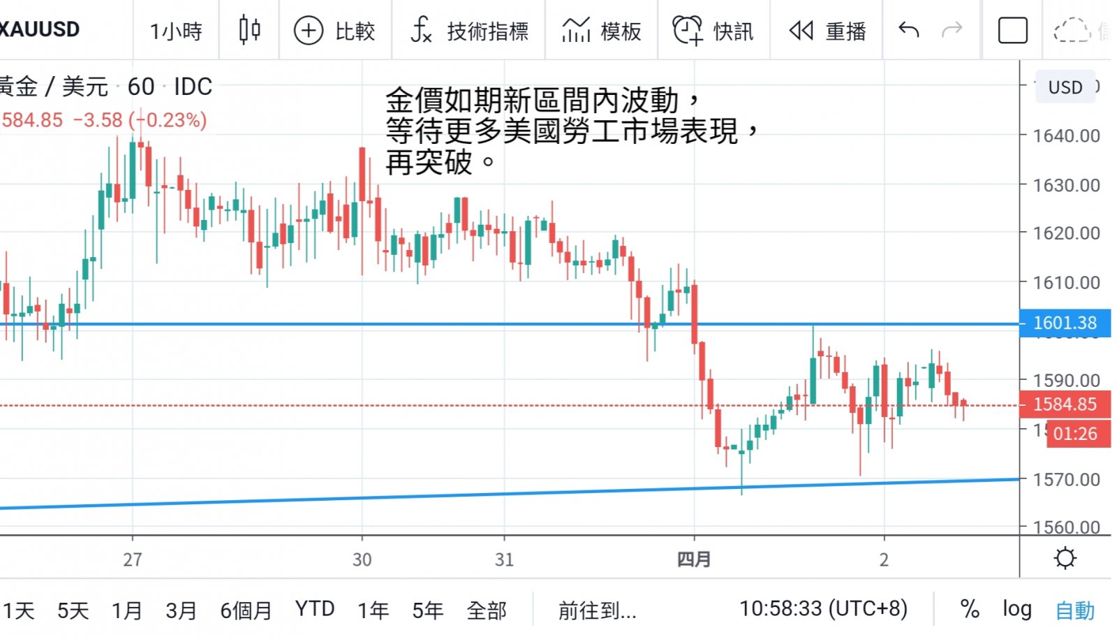 中長線上,由於最近的經濟形勢有衰退的風險,而黃金作為避險貨幣自然備受追捧,長遠升勢不變,但即市金價受制美元爬升而回落,
