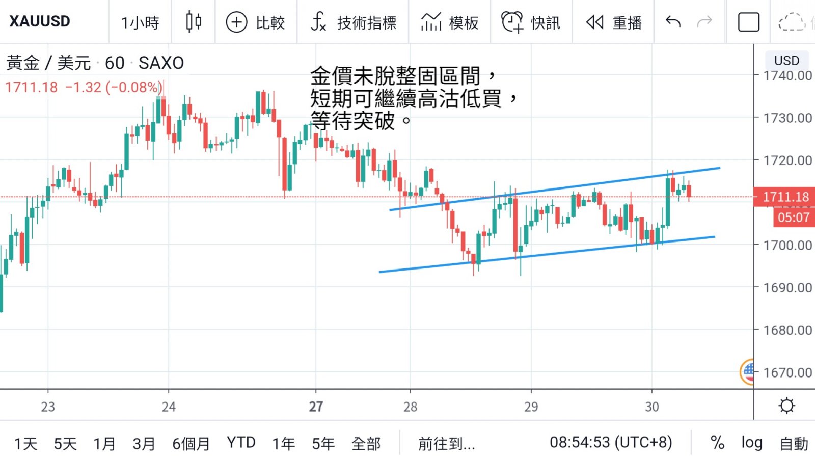 未作突破前,此水平將會開始作出整固。若需撈底,可待金價在整固區間底部才再買入,即市以上落市操作為主。