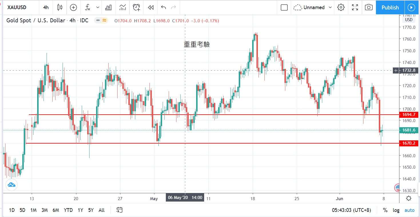 美國經濟數據表現理想,顯示逐漸擺脫新型病毒在經濟上的困擾。投資者風險偏向加大,黃金連續三週下跌,金價在週五非農就業報告發表後急速下跌,