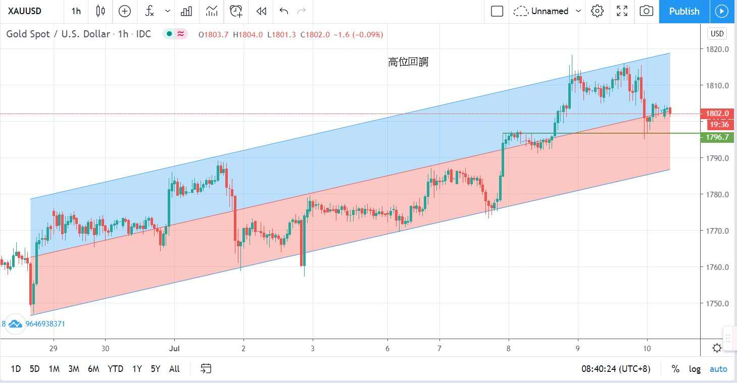皆比預期及上週數字有所改善。金價昨日回調,最低做1796美元,收報每盎司1801美元,下跌7美元。