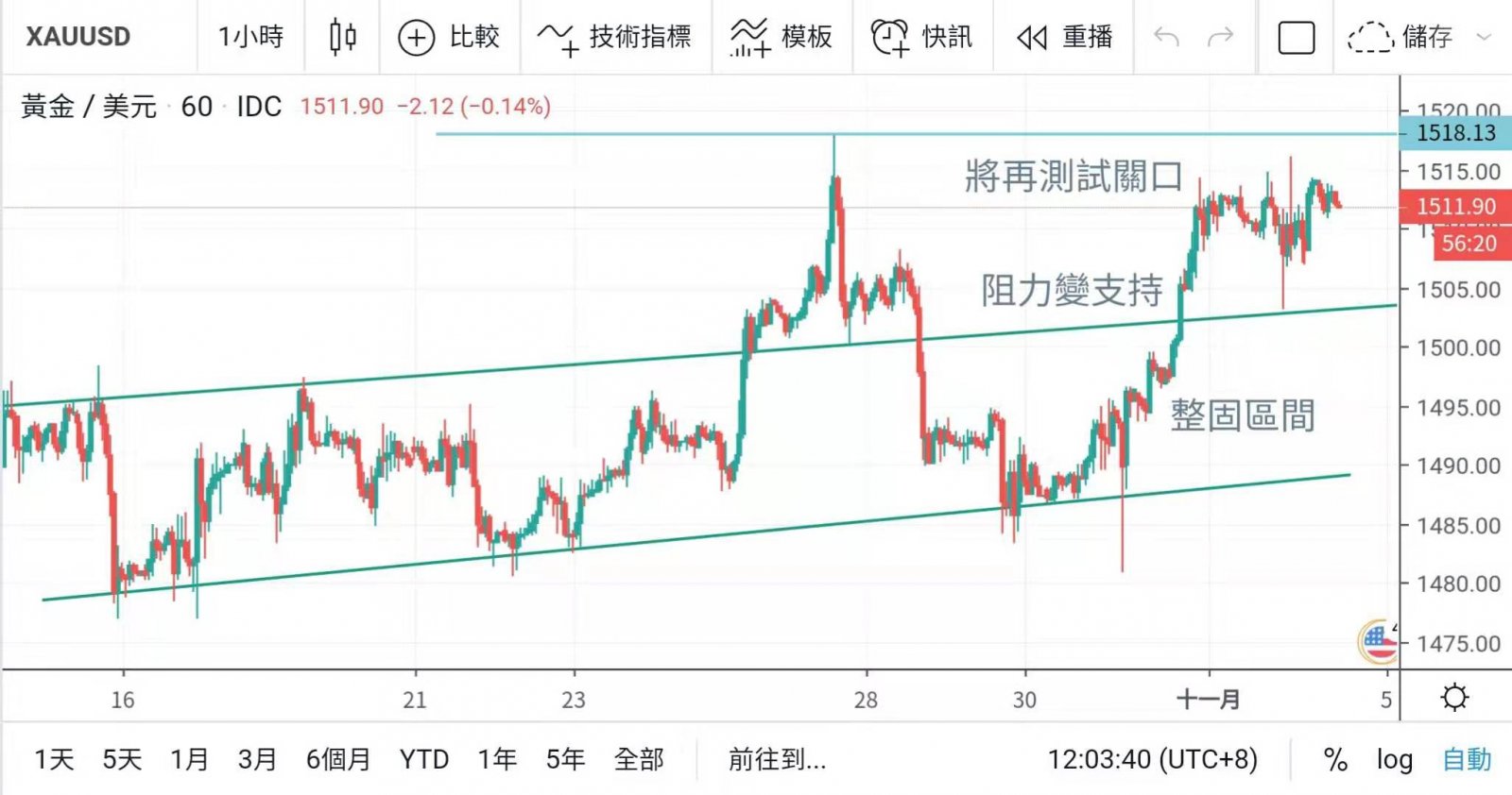 金價突破1500關口後己見企穩,技術上金價由於下方整固良久, 早兩星期衝擊1520不果而後回軟,此番升勢定必再度測試此關口;