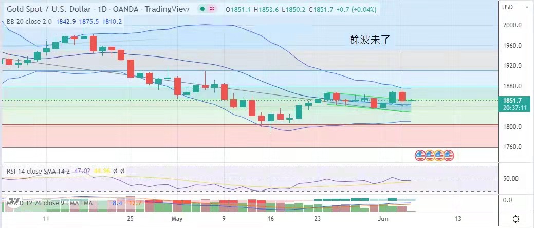 通脹將進一步的惡化,美聯儲正在採取必要的措施,金市上周連續及兩日作假突破,在周三最低見1828.5美元,在周四則最高升穿1870美元,周五非農
