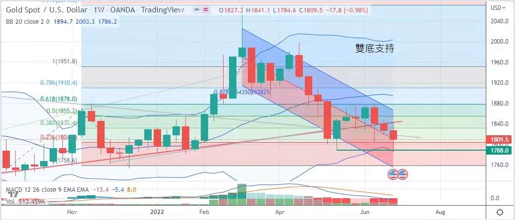 後,金價即開始回落,加上美聯儲主席鮑威爾表示決心以加息去壓抑通脹,暗示本報年度加息不會手軟,金價近期明顯受壓下
