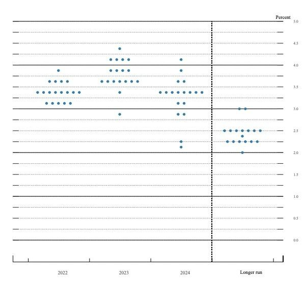 美聯儲最新點陣圖顯示美國息口仍會急速攀升,於2023年見頂,2024年將開始降息。究竟咩係點陣圖呢?點解會對息口