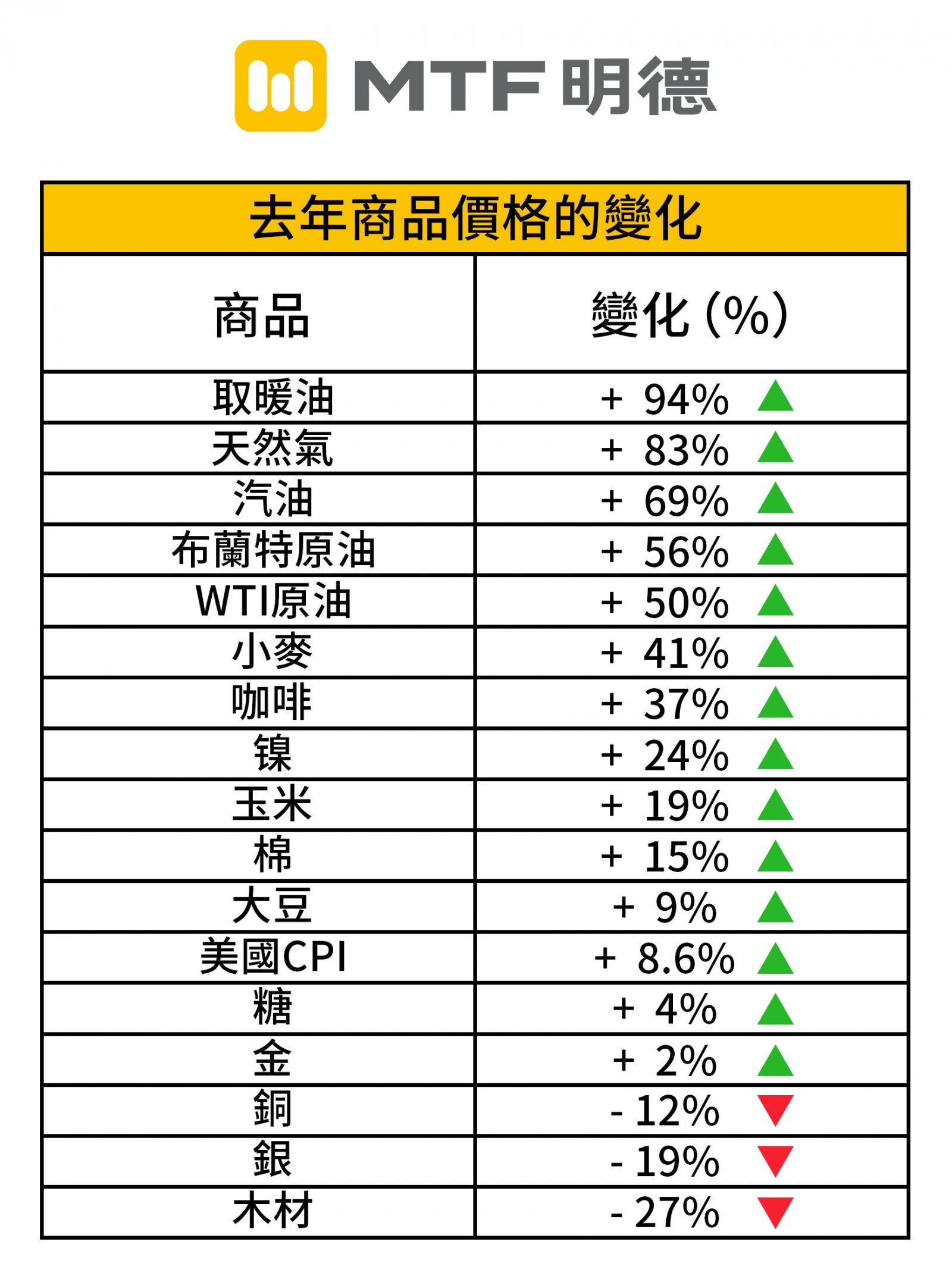 今次通脹,除了因全球狂印銀紙外,疫情及俄烏戰事亦係影響之一,導致供應鏈嚴重失衡。環顧商品市場升幅🪙,能源及食物類升幅遠大於礦產,正正顯示俄烏戰事導致歐洲糧食及能源供應受限(烏克蘭係東歐糧倉,俄羅斯係歐洲能源供應大國),這亦代表今次通脹係由cost pull 所引起,供應鏈問題而出現通脹危機