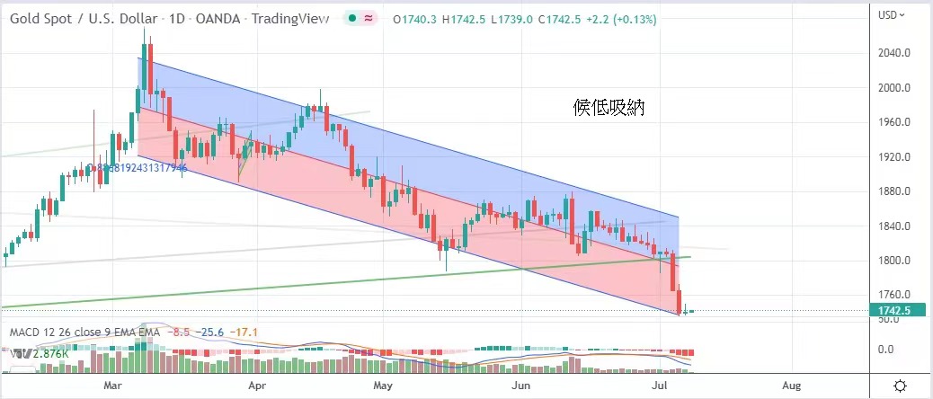 得增加27.5萬人比市場預計樂觀,現時金市空頭仍然佔優,但一旦金價跌穿1730美元已有足夠的吸引力,可候低吸納。今