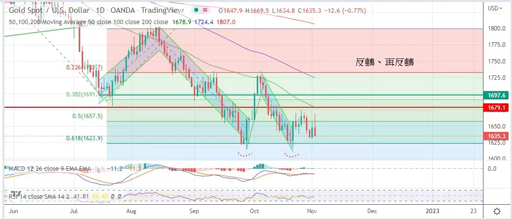 度急飆至日高的1669.5美元,然而鮑威爾說明加息速度雖然可以最快在12月放緩,但加息周期可能更長,金市再
