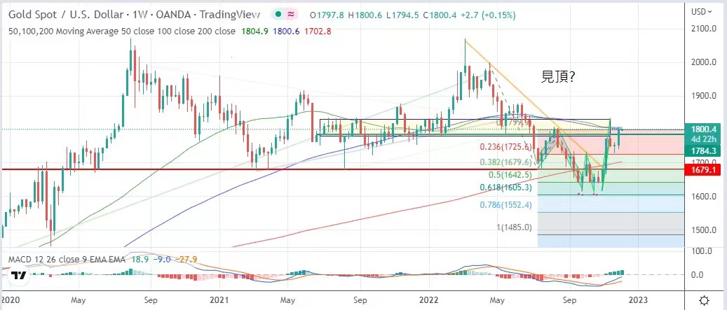 度升穿1800美元關口,最高見1804.1,金價上周最低見1739.7美元,最後以1797.8美元收市。以一星期計,金價