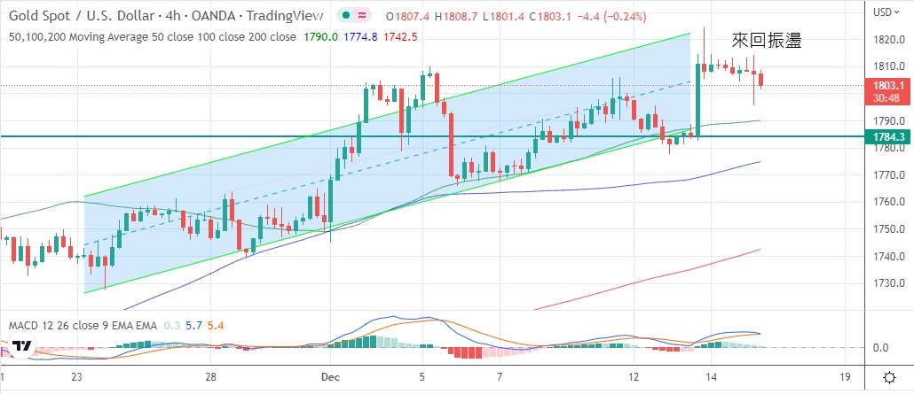 結果後曾跌穿1800美元關口,最低見1795.5美元,金價最高見1814.3美元,最後以1807.5美元收市,跌3.3美元。