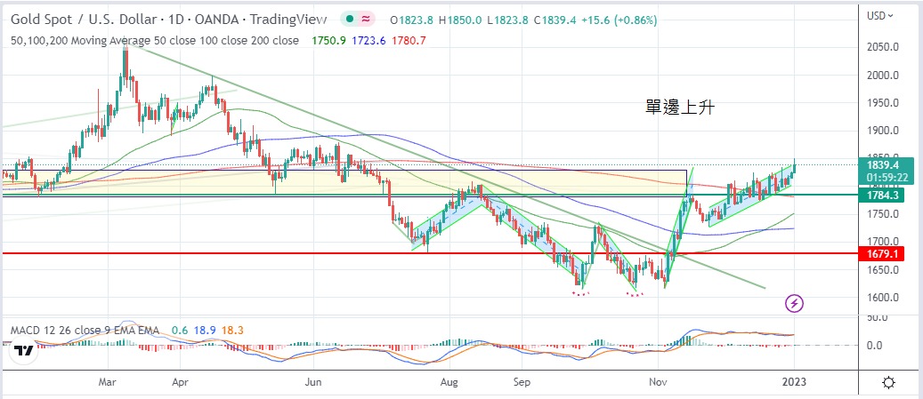 金市在2023年有過好開始,在上年12成旗型後開展震盪,到昨日終於突破1780至1830美元的長期供應區域,兩