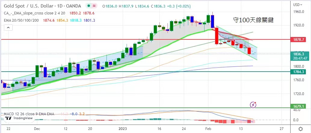 美元指數一度衝破104水平,金價跌破50天平均線支持,守住100天線1818美元尤為關鍵。今日建議波幅1830美