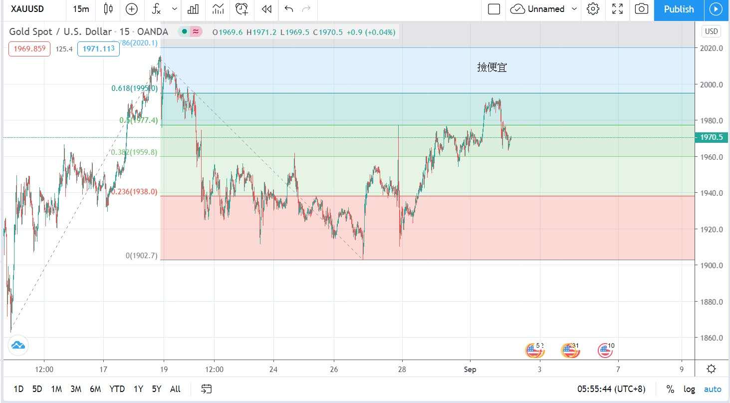 但昨晚公布的美國供應管理協會製造業採購經理人指數為56勝於預期的54.5,引領美元大幅反彈至92.47。金價也顯然受美元走勢所牽動而大幅震蕩,