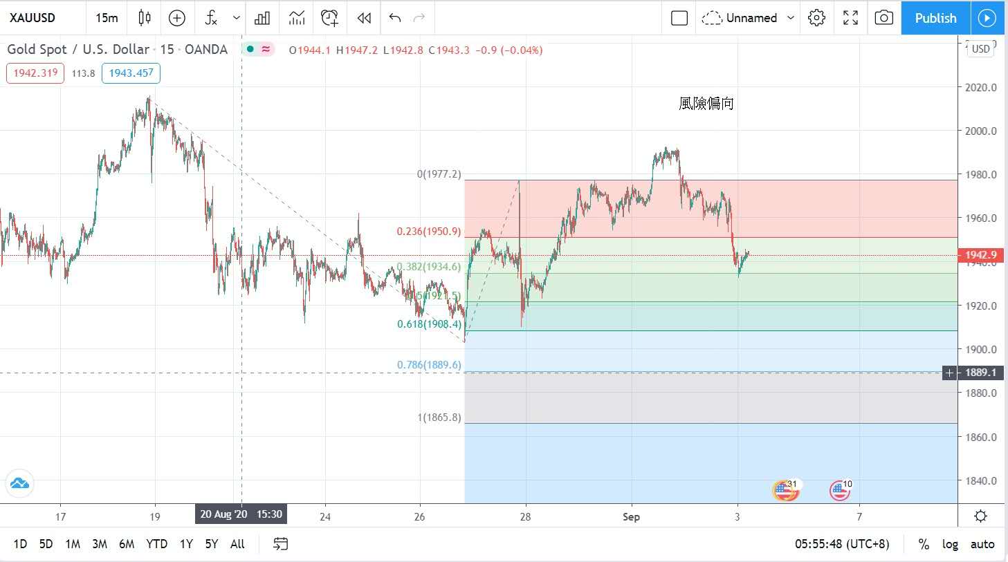 股市暢旺,投資者更願意追求風險偏向高的投資產品,黃金避險功能稍退,加上美元指數走強,從低位92.1升至最高的92.9,金價昨日因此大幅波動,