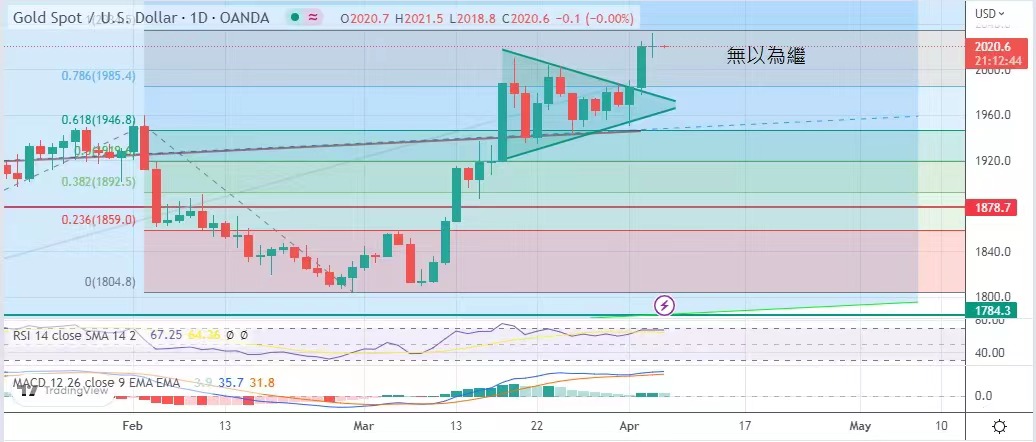 業數據遜於預期,3月數字僅增加14.5萬人,大幅低於預期的21萬人。金價創本年新高後無以為繼,金價最高升至