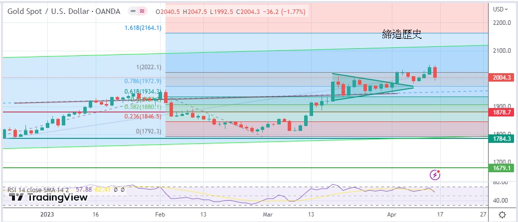 數連升三個星期,投資者憧憬美聯儲提早結束加息週期,刺激金價突破本年高位,高見2048.8美元,金價在歷史
