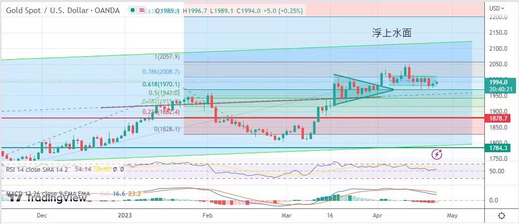 元之下苦苦掙扎,金價最高見1990.8美元,最低見1974.2,最終以1989.1美元收市,升6.1美元。