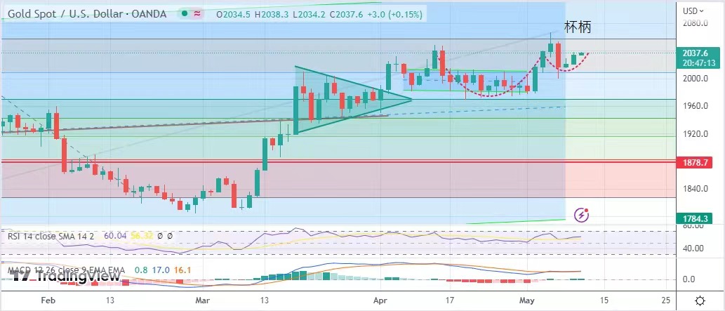 長會面未有結果,金價最高見2037.7美元,最低見2018.6美元,最終以 2034.5美元收市,升13.1美元。