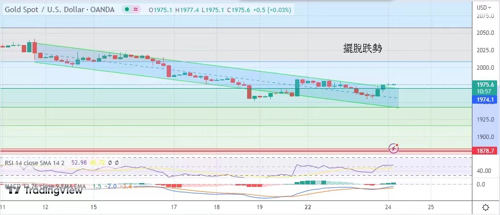 擾,金價早段持續低迷,最低曾見1954.3美元,之後美國5月分製造業採購經理指數再次跌破枯榮線,金價反彈,
