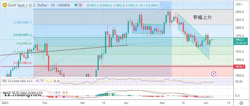 另一方面,市場亦在觀望下周的通脹數據及美聯儲議息,態度變得審慎,金市窄幅上升。金價最高見1966.4美元,