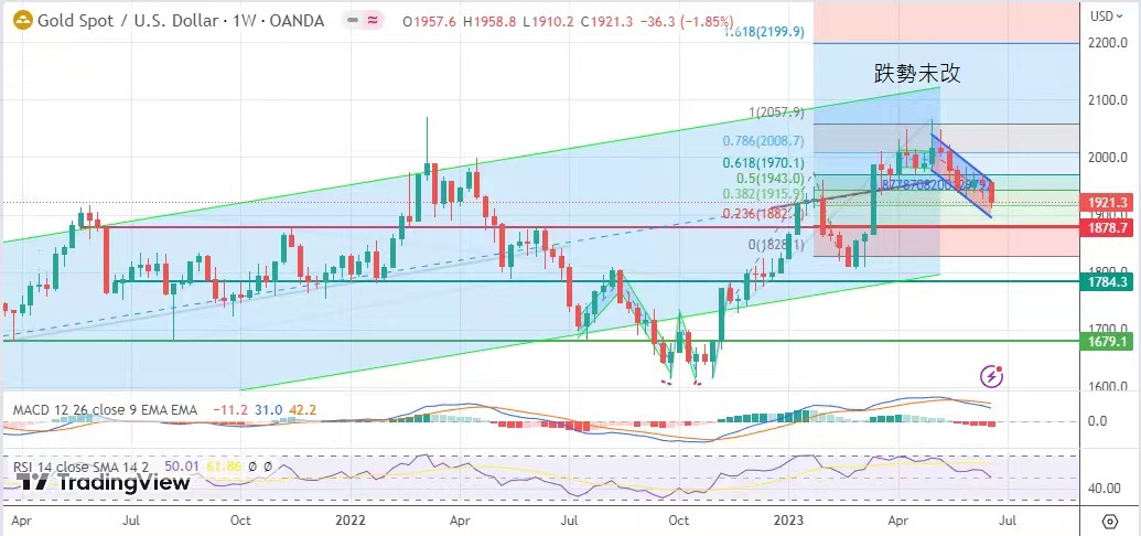 見1910.2美元,金價上周最高見1958.8美元,周五以1921.3美元收市,以一星期計,累跌36.3美元。
