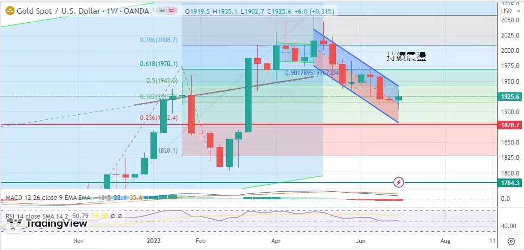 慮,金市上周震盪上行,金價最高做1935.1元,最低見1902.7美元,終以1925.5美元報收。一星期計,升6