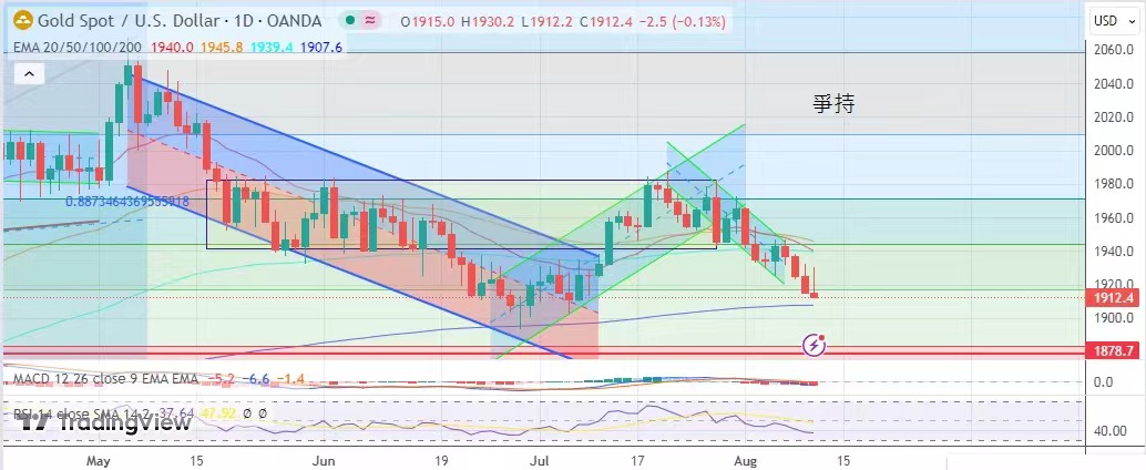 30.2美元,但之後無以為繼,最低見1912.2元,最終於1912.4美元報收,跌2.6美元。