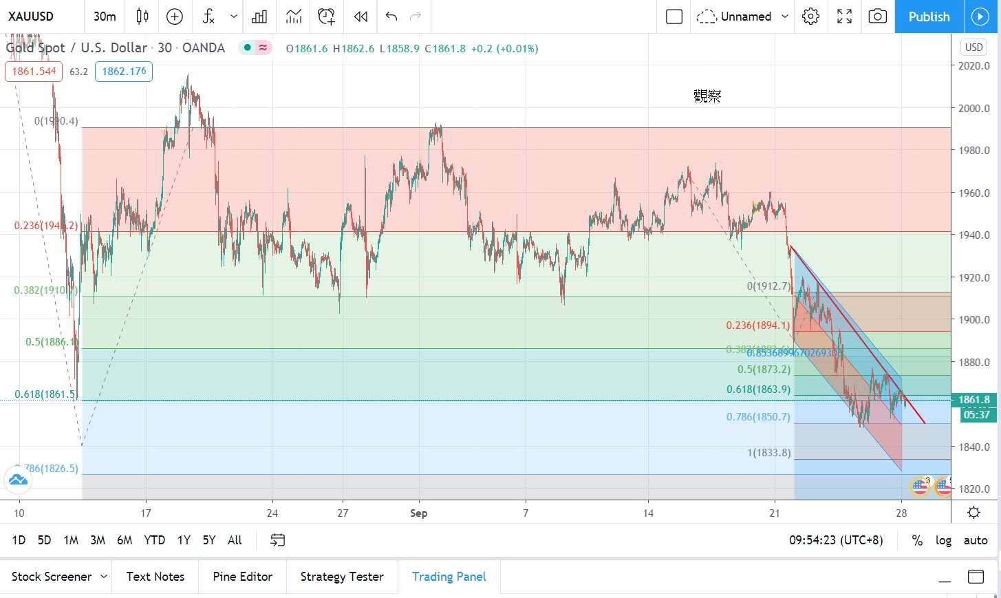美元指數曾升至94.7,創兩個月以來高位。金價在上週進行調整,受累於美元升值,金價跌穿1900關口,最低觸及每盎司1849美元,其後市場憂慮新冠疫情拖累經濟復甦,
