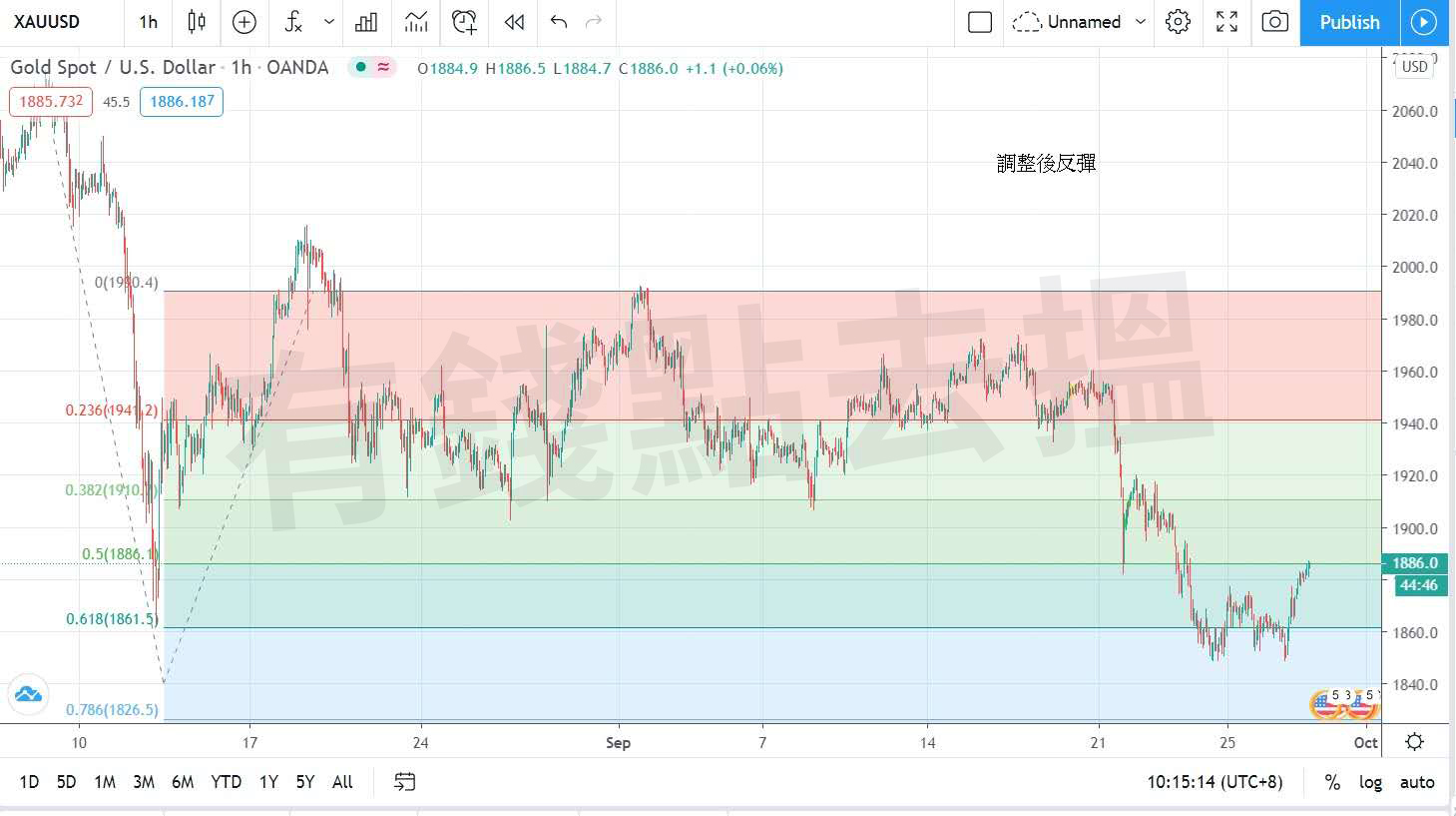 金價昨日在上週進行調整後反彈,因歐洲股票市場做好英鎊大幅反彈,美元指數下跌,金價在進入美市時段後即展開升勢,金價最低曾見每盎司1848美元,