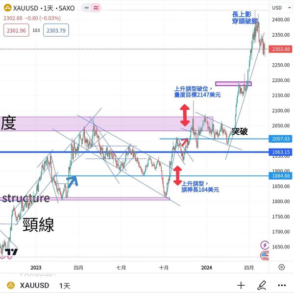 上週市場焦點在美聯儲議息會議及勞工數據上,市場已高度預期美國會維持息口不變,但會後發佈會,鮑威爾明確表示,下次行動只會減息不會加息,堅決放鴿支持了金價靠穩於2300上方。勞工市場方面,表現則強差人意,小非農及非農均回落至20萬以下,加上失業率回升至3.9%,引證勞工市場放緩,令市場更為憧憬美國會提早於9月開始減息,一掃近期市況對高通脹高利率的疑慮。