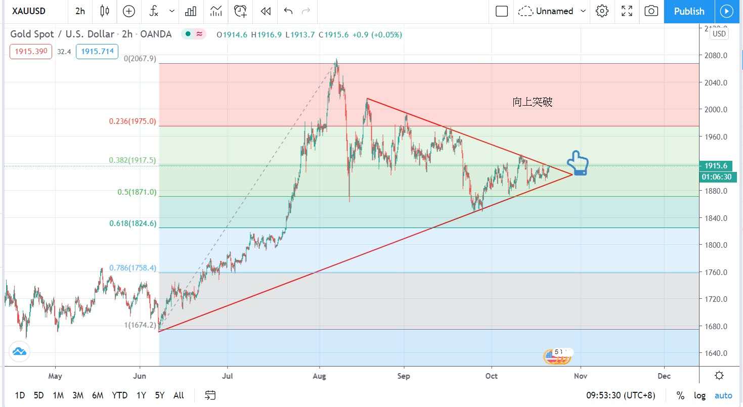 最終以每盎司1907美元報收,升3美元,展望向上突破。