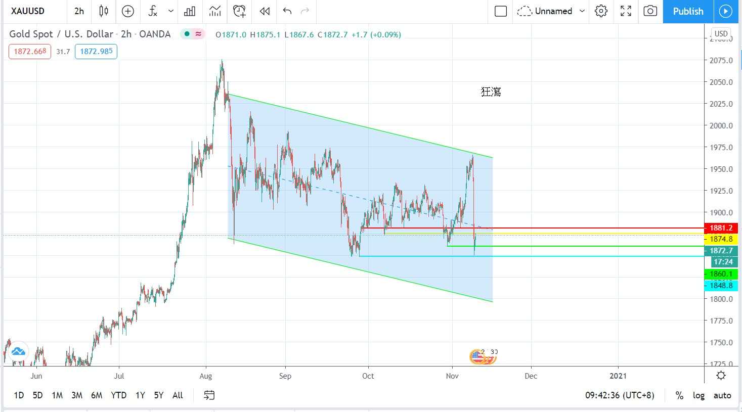 但投資者獲利回吐,最後反跌,跌1.59%,結束連續五日以來的升勢。昨日金價狂瀉,受疫苗消息影響,昨日歐洲時段即被殺個措手不及,大跌89美元,
