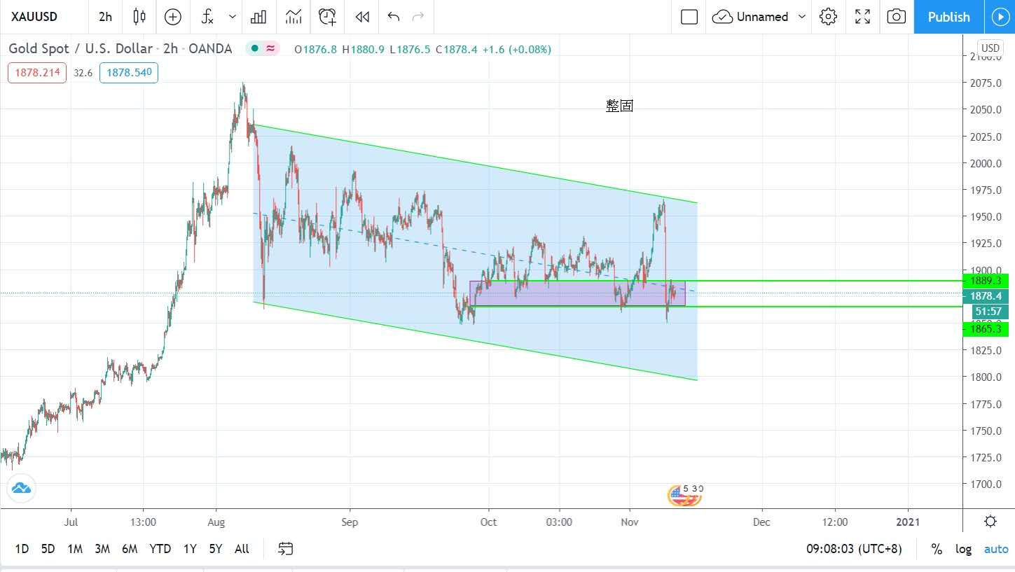 金價昨日反彈,市場憧憬美國將推在12月推出新財政及貨幣刺激措施,為金價經上日急瀉後帶來支持,金價最高見每盎司1890美元,最後收市價為每盎司1877美元,