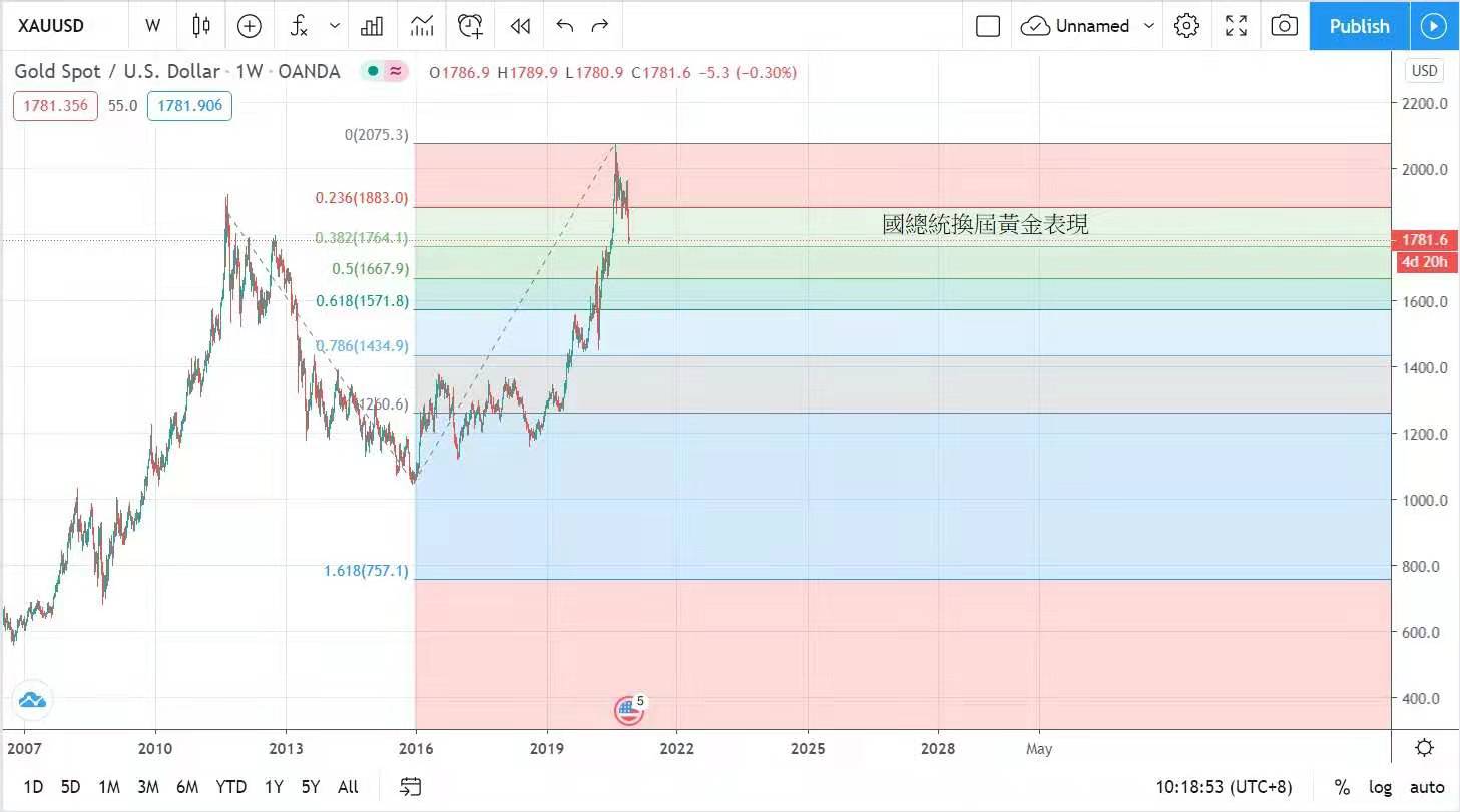 投資者最終亦會重投黃金市場,以黃金抗通脹及貨幣貶值,長線仍值得投資。美國總統換屆黃金皆有大波動,長綫技資者可以1764美元進場。今日主要波幅1775至1792美元。
