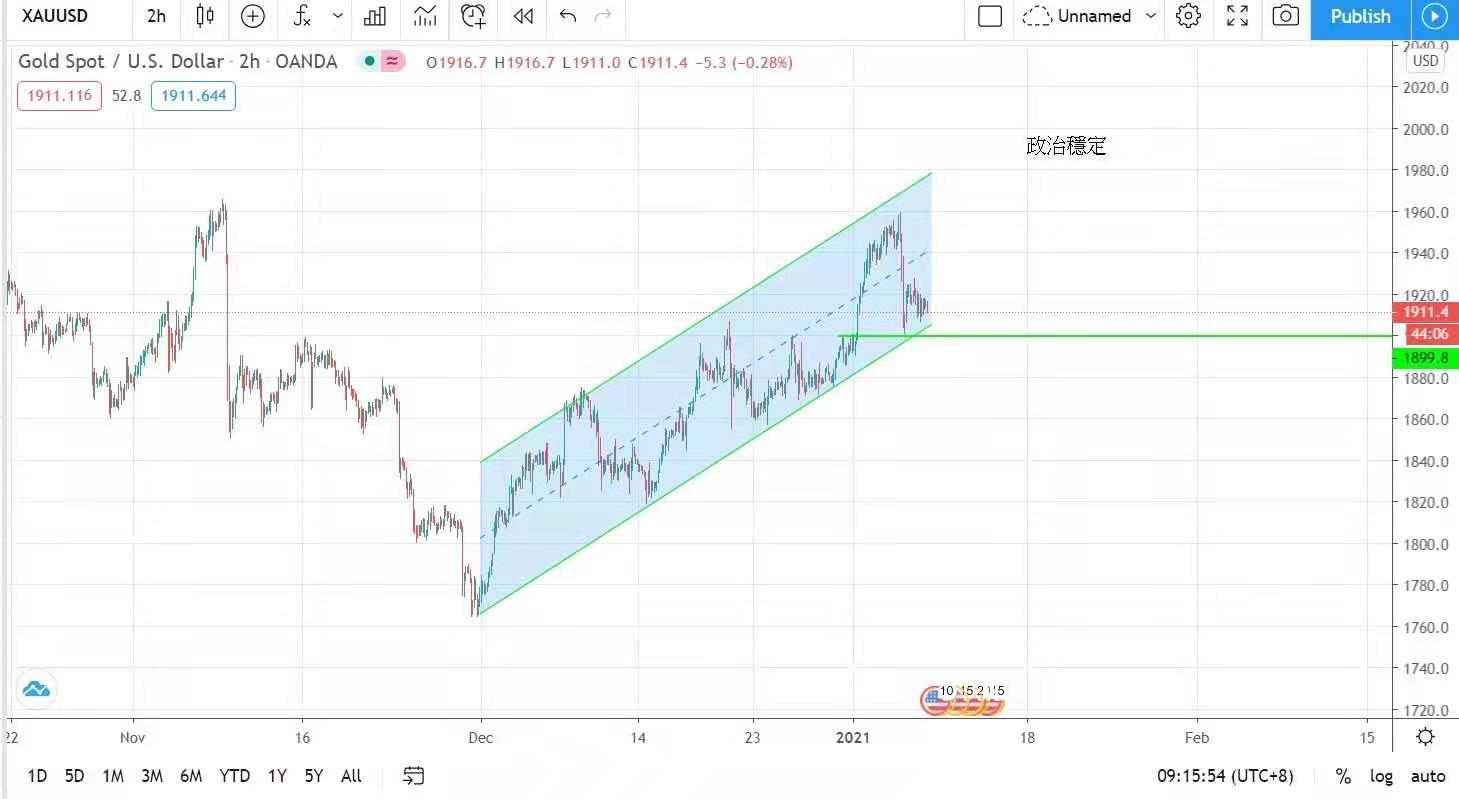 拜登政府在未來四年將全面控制白宮及國會參眾兩院,市場預期新政府會推出更大規模的財政刺激計劃,原有利金價走勢,但政治穩定的因數令美元即時從低位反彈,導致昨日金價倒頭下跌;