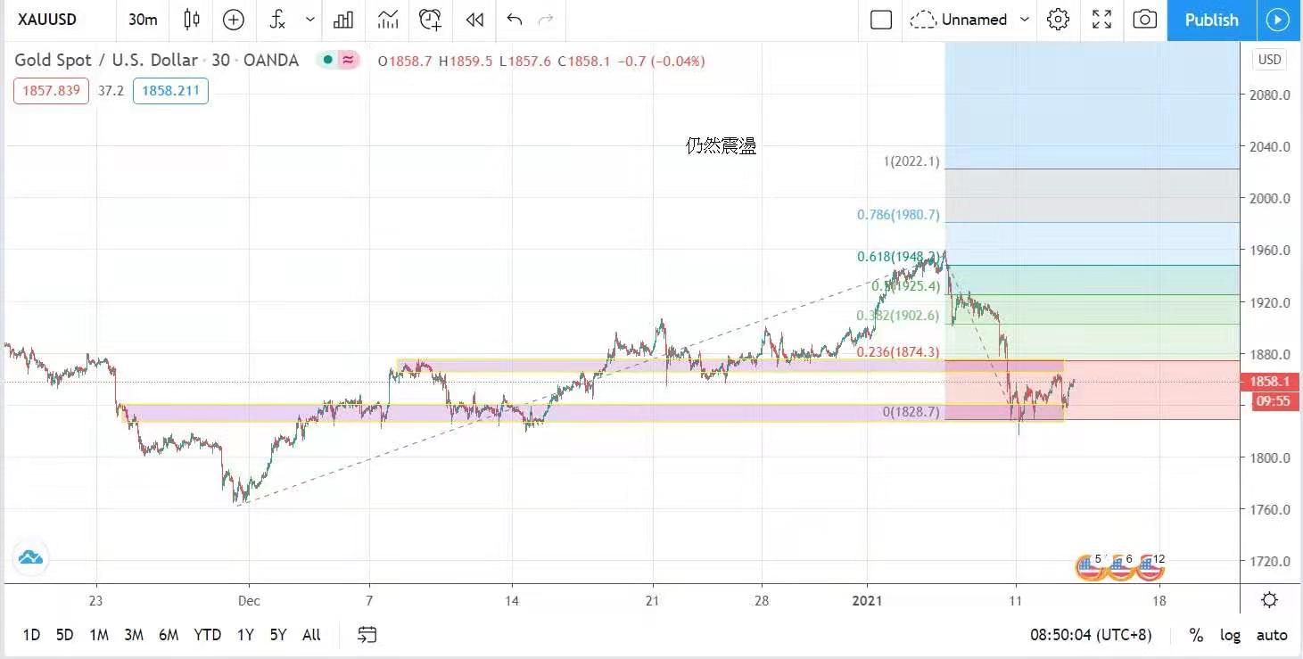美元強弱完全主導金價上落,金價自上週五大跌後在現價找到支持,預料今日仍然震盪,建議波幅在1840至1867美元之間。