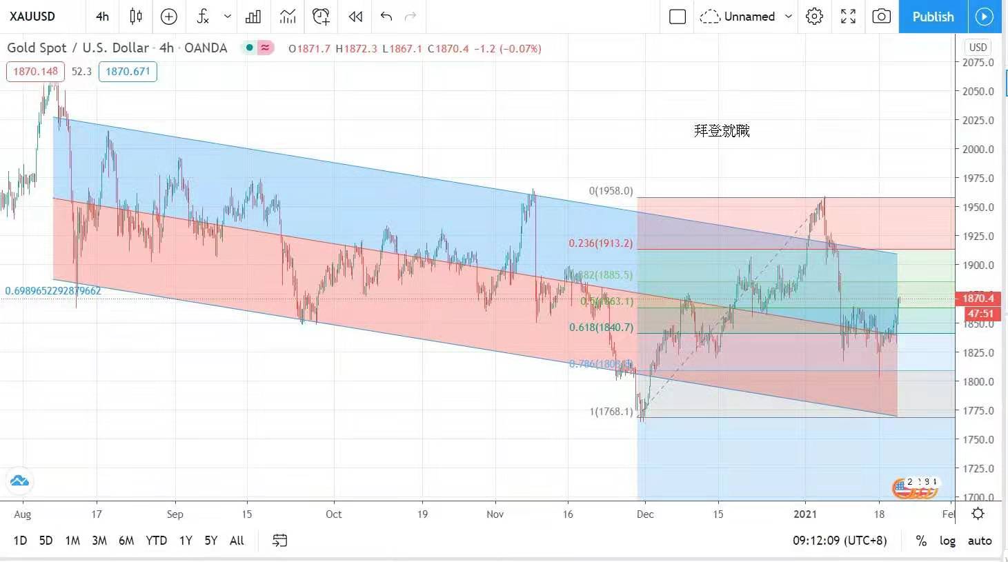 拜登宣誓就職美國第46任總統,承諾會加大財政援助措施去提振經濟,黃金市場昨晚扮演大龍鳳作賀。金價要再闖高位,要看拜登所提出的更大量寬政策是能否落實,