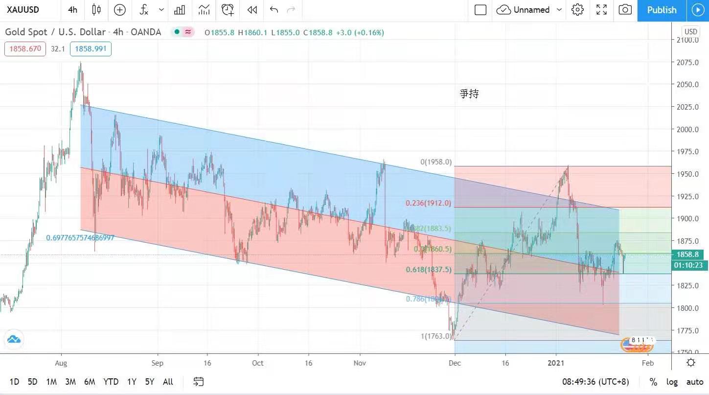 美元重現弱勢,加上市場預期美國拜登政府會加大財政援助措施去提振經濟,金價將在現金貶值中得到支持。但現金價仍受制於每盎司1864美元的阻力位,