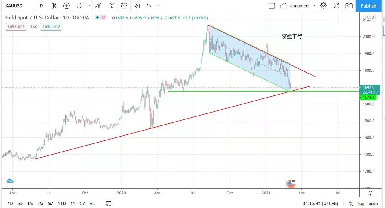 金價昨日依然疲軟,昨日國債孳息率再度上升打擊金價,美聯儲鮑威爾暗示短期不干預,金價仍將弱勢,1674為關鍵位。