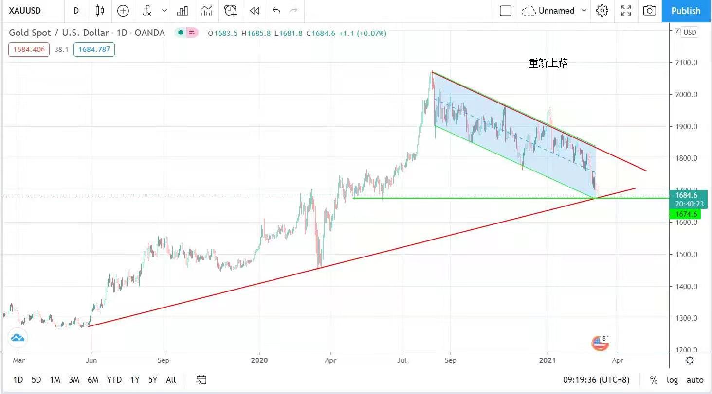 美元指數貼近92點,金價重回跌軌,最低見見每盎司1676美元,波幅達38美元,最終以每盎司1683美元收市,跌18美元。