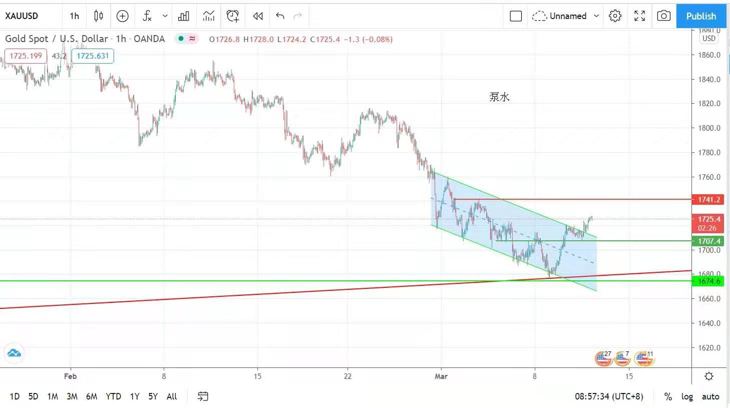 所以黃金現階段仍未確認轉勢,正在考驗兩日升穿的下降軌,料短期仍會在1700至1740美元之間爭持。