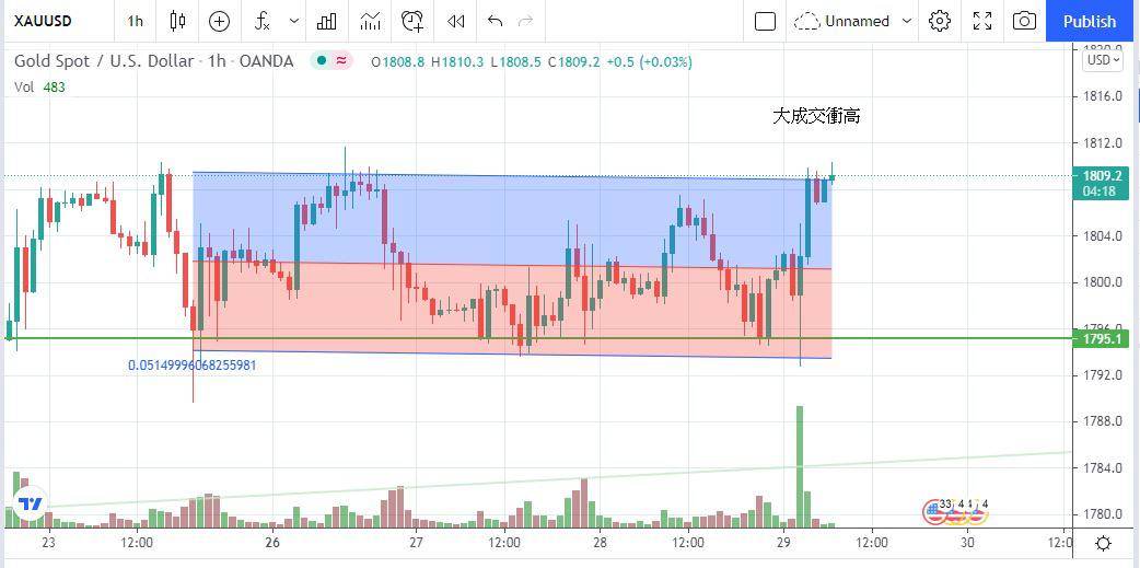 投資者昨日在亞市時段押注美聯儲放鴿,金價早段上升,但議息結果公佈後,美元指數大幅波動,金價曾下跌至日低1793美元,美聯儲主席鮑威爾放鴿,表示有討論購買資產的意願,但無時間表,金價曾藉此大成交衝高至1810美元,最終以1807美元收市,升8美元。