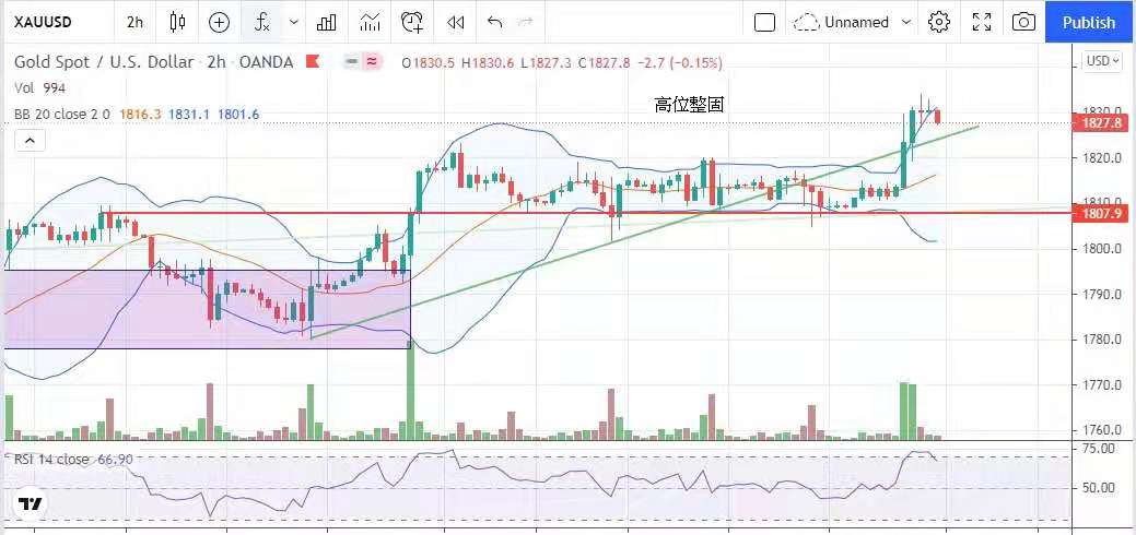 上週金市藉疲弱非農數據走高,週一為美國勞動節假期,預料金價將在高位整固,並窄幅波動,今日建議波幅在1820-1832之間。